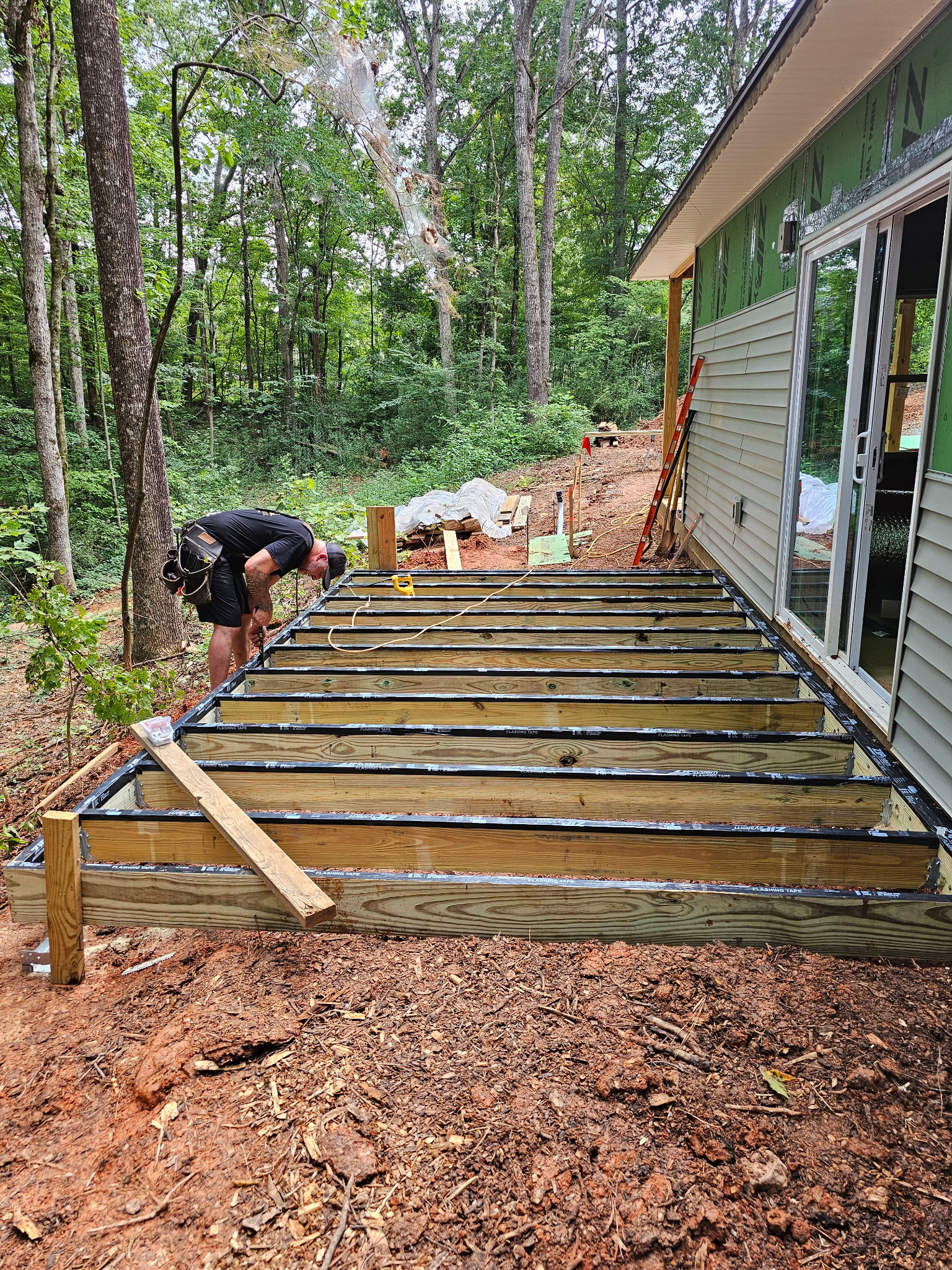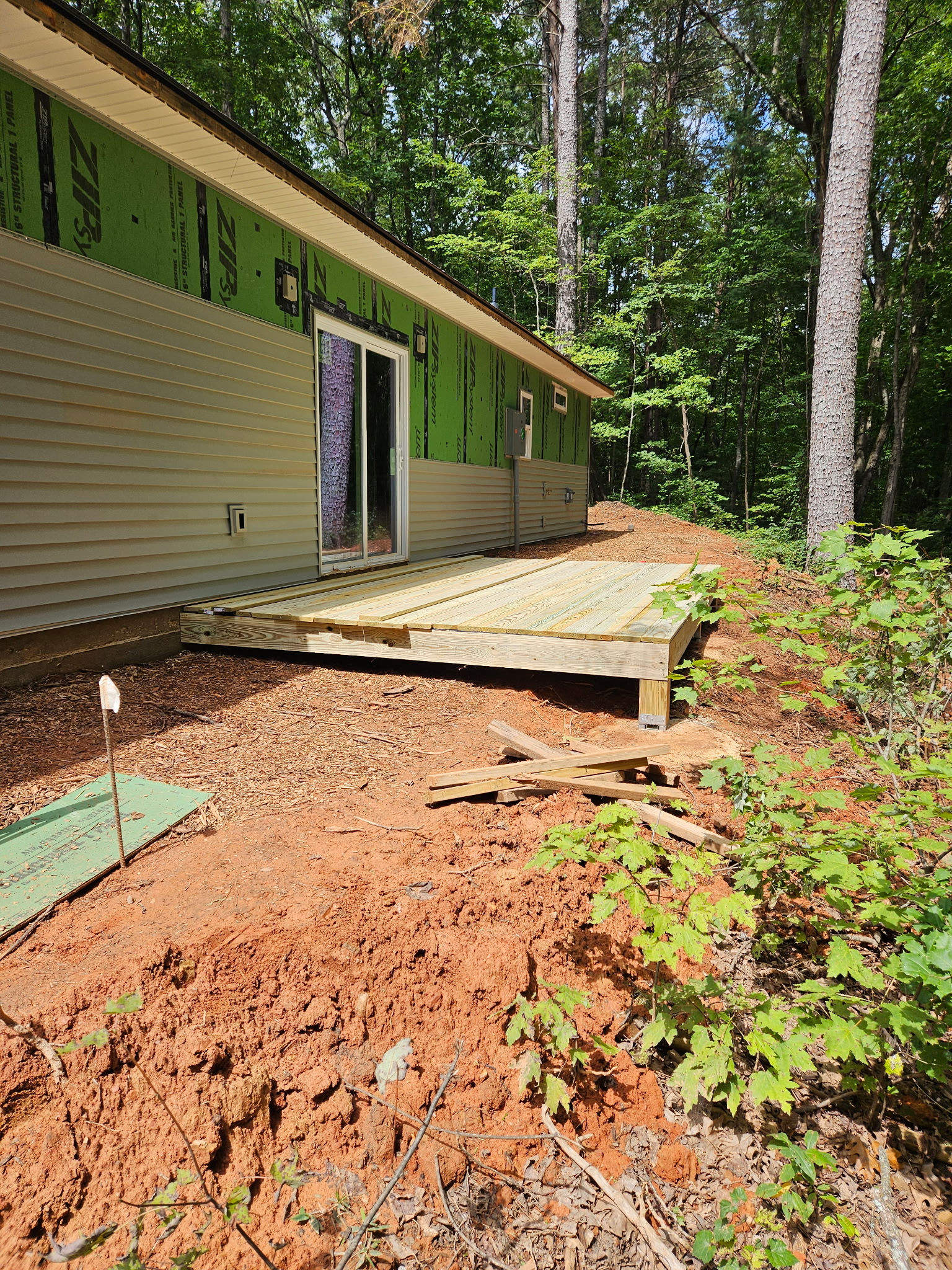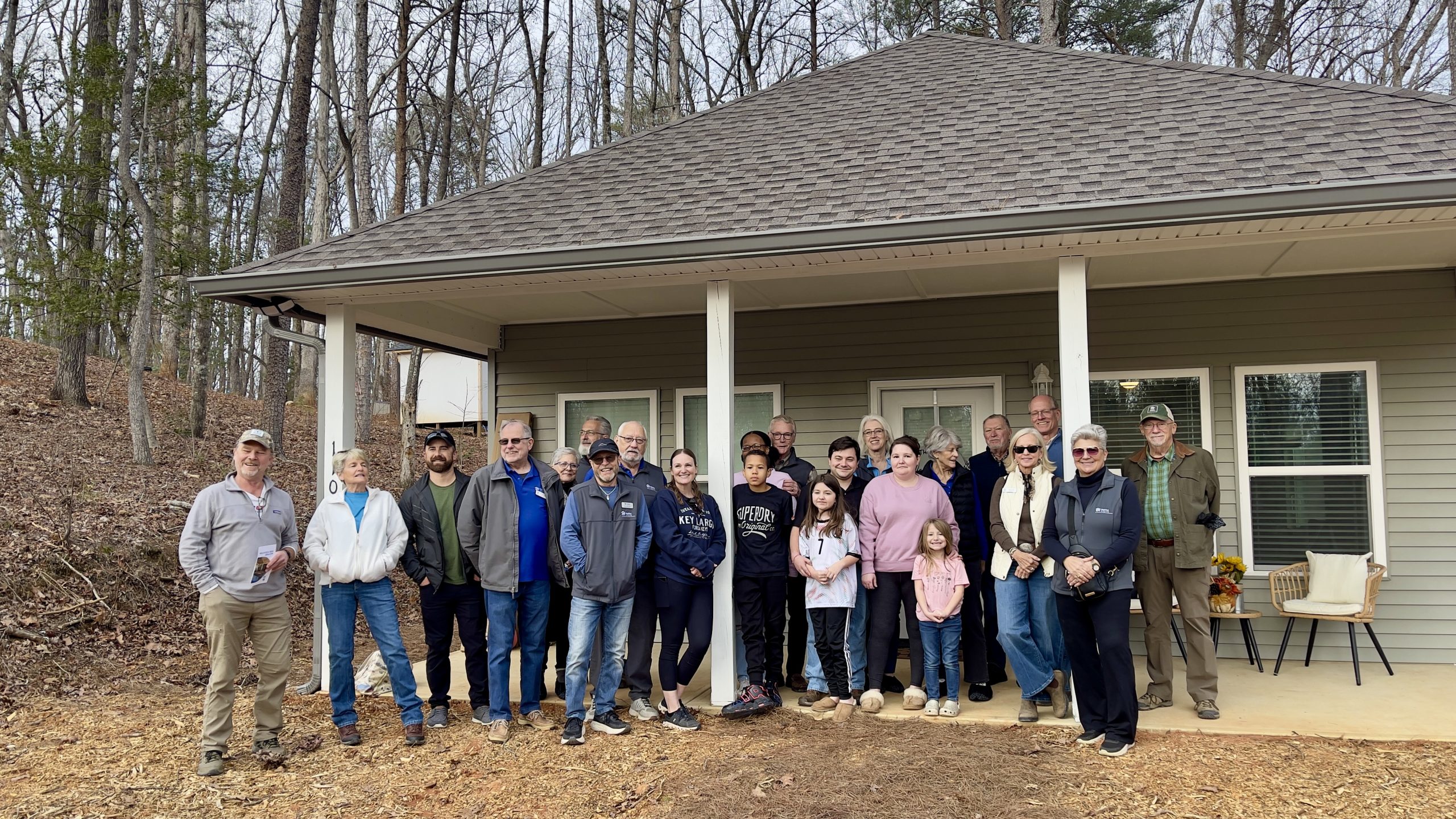 We experienced several rain delays in the starting of our latest home build, but when the sun came out, we were off to a fantastic start! Averaging 20 volunteers on each Saturday, this team of volunteers has exceeded all expectations. On the first day, all exterior framing was completed & walls were raised, which led right into the interior walls being constructed and raised on Day 2. Our third volunteer day all exterior sheathing was completed and the house truly took shape. The front door was cut out and the feeling of home started setting in. The fourth day was full of excitement as the windows were opened and prepped and the front porch beams were set. This was all accomplished during the month of June! We’re now ready to let the professionals do their thing and set the trusses and prep the roof. We may be taking a short break from volunteer build days, but we’ll be back building soon!